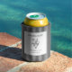Bring timeless charm to your celebration with this black and white striped can cooler, featuring a hand-drawn floral urn. Perfect for black-tie garden weddings or city soirées. Personalise with names, date, and location for a refined favour guests will love and use.