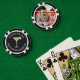 Custom wedding poker chips with your own photo on one side and the text "good for one signature cocktail" with a drink illustration on the other. Multiple game token colours available to select from.