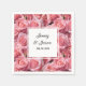 This custom wedding paper napkin is shown in a lovely pink roses floral print.