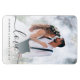 Celebrate your wedding with this keepsake flexible magnet, featuring the word "love" in elegant charcoal grey handwriting script with swashes at the beginning and end. Personalise it with your names and wedding date, and replace the sample image with your favourite wedding photo. A white gradient filter helps make the text pop.