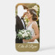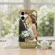 Capture the magic of your special day with this elegant custom photo iPhone case. Featuring a clean, modern design with a gold-toned accent bar, this case allows you to showcase your favorite wedding portrait or engagement photo.