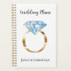 Keep track of all of the dates and appointments for your wedding with this custom Wedding Plans planner which features a diamond wedding ring graphic and the names of the bride and groom on the front. The back side has a smaller version of the ring with the words "Happily Ever After". All text can be customised.