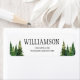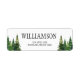Custom wedding return labels with watercolor forest trees.