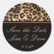 Round Wedding sticker Save the Date shown in a black and safari leopard print. Customise this sticker with your names and date. Change to your colours just click customise and go to the boxes at the right click on the proper box and use the colour box.