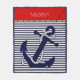 Beautiful contemporary ship anchor, on a classic and chic navy blue and white stripes pattern. Set off with white nautical rope, with room to personalise or customise with name, initials or monogram of your choice, or any kind of nautical expression like "Ship Ahoy", "Sail Away", "Anchors Aweigh", or "Bon Voyage". Created for the captain, lover of vacation and summer. For those who love decorating their master or children's bedroom, nursery, living or family room, woman or man cave, college dorm, condo, studio or apartment, beach house, country cottage, log cabin, RV or camper, boat or yacht, lake or river vacation home, or car.