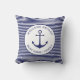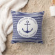 Custom Boat name or Family name, Welcome Aboard, nautical navy blue anchor white stripped Throw Pillow