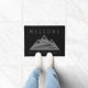 Custom welcome door mat with mountain logo. Modern design doormat with mountain peaks. Elegant black and gray design with family name.