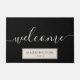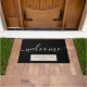 Create a family name doormat to greet friends and family, and a welcome in a modern script typography. Your family name is centered within a frame, creating a graceful welcome with a sense of heritage. The typeface for your name is inspired from first-century Roman inscriptions with classical proportions but adding a modern flair, making it popular for elegant, historic-feeling designs.