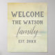 This custom welcome poster typography design is ready to personalise with your family name on distressed background shabby chic style wall art for home decor or wedding gift.