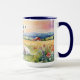 The vividly glazed rim and handle, available in rich colours, infuse vibrancy into the serene scene. Whether you choose to match your existing dinnerware or gift a mug in your friend's favourite colour, this customisable mug elevates your coffee experience.