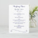Custom white and blue wedding menu with customisable text