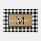 Beautiful contemporary black and white chequered plaid pattern with friendly Welcome greeting written in an elegant stylish calligraphy font. With room to customise or personalise with family name monogram or initial of your choice. Original simple rustic style decor accent for decorating the front porch or doorstep of your country cottage house, log cabin, mountain lodge, fishing camp, lake or river vacation home.
