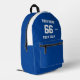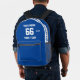 Create your own custom white blue Sport Football Style Printed Backpack with Name, Number, Team Name, Slogan and Year. Personalise this simple classic Printed Backpack template with your custom message, name, team name and year. Easily personalise it for a cool sport keepsake. Create your unique personalised gift for coach, boy's birthday, football player, teammates and friends.