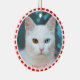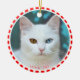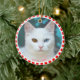 Custom White Cat Photo with Red & White Frame Ceramic Ornament