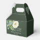 Personalised Thank you and/or welcome wedding favour box. Autumn and wintertime-inspired white watercolor flowers are displayed on an Emerald Green background.