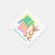 Custom Wild & Three Kangaroo 3rd Birthday Napkins featuring a watercolor lion in a party hat. Customise with your birthday honoree's name.