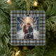 Custom Winter Engagement Photo Card with Tartan Ceramic Ornament