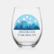 Custom Winter Family Cabin Blue Snowy Mountain Stemless Wine Glass