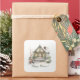 Seal your holiday greetings with charm using this traditional Christmas cottage sticker. The design features a snowy winter home decorated with festive garlands and glowing windows, captured in a classic watercolor-inspired illustration. A timeless brush script greeting completes the look, making it the perfect finishing touch for cards, gifts, or holiday party favours.