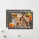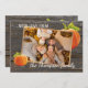 Unique, classy, trendy, pretty and decorative Thanksgiving holiday card. Cute WITH LOVE FROM text and room to customise or personalise with a photo and names (or family name) of your choice. With cute classic orange pumpkins on a weathered looking grey rustic farmhouse inspired barnwood planks pattern background design. And a customisable season greeting poem on the backside of the card.