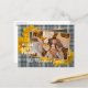 Unique, classy, trendy, pretty and decorative Thanksgiving holiday card. Cute WITH LOVE FROM text and room to customise or personalise with a photo and names (or family name) of your choice. With cute classic warm yellow fall Mums flowers pumpkins on a teal blue, ochre mustard brown and grey coloured rustic farmhouse inspired plaid tartan pattern background design. And a customisable season greeting poem on the backside of the card.