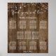 This rustic, elegant suite of designs presents popular design trends combined in a fresh way. With a rich brown wood background and dual strings of twinkling light accents, I've combined a beautiful modern script font to render graphics depicting key words and phrases in the design set. In this poster design, the elegant calligraphy reads "find your seat here". All other text can be edited with your personal details. This collection is ideal for a casual or country post-wedding reception or celebration event. All layers are unlocked to allow you as much control as you desire.