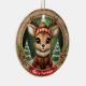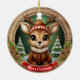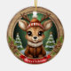 Custom Wooden Framed Deer Holiday Decoration. Rustic Vibe Personal Name Gift Tag. Whimsical Winter Wonderland Woodland Wildlife Xmas Deer with Antlers Character Ceramic Ornament! Featuring customizable white text saying "Merry Christmas" on a vibrant red ribbon – easily swap it out for a loved one's name to make a truly personalized Tree decor with charming accents of pine cones and evergreen branches for that cozy look. At the center is a cute, reindeer in cartoon graphic style, dressed in a fur collared coat and hat, evoking the spirit of an animal with a festive twist. The background showcases an enchanting snow landscape complete with a snowy trees, capturing the joy of the season. This two-sided, personalizable pine wood artwork ensures seeing the Xmas adornment from every angle – illustration appears on both front and back, so it always looks complete no matter how it spins while hanging. Perfect for gifting or decorating, and you can transfer this unique design to a variety of other products, from mugs to cards and more! Personalize your pinecone embellishment and bring home this delightful keepsake today – visit Zazzle to customize and order now! 🦌🎄