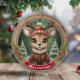 Custom Wooden Framed Deer Holiday Decoration. Rustic Vibe Personal Name Gift Tag. Whimsical Winter Wonderland Woodland Wildlife Xmas Deer with Antlers Character Ceramic Ornament! Featuring customisable white text saying "Merry Christmas" on a vibrant red ribbon – easily swap it out for a loved one's name to make a truly personalised Tree decor with charming accents of pine cones and evergreen branches for that cosy look. At the centre is a cute, reindeer in cartoon graphic style, dressed in a fur collared coat and hat, evoking the spirit of an animal with a festive twist. The background showcases an enchanting snow landscape complete with a snowy trees, capturing the joy of the season. This two-sided, personalizable pine wood artwork ensures seeing the Xmas adornment from every angle – illustration appears on both front and back, so it always looks complete no matter how it spins while hanging. Perfect for gifting or decorating, and you can transfer this unique design to a variety of other products, from mugs to cards and more! Personalise your pinecone embellishment and bring home this delightful keepsake today – visit Zazzle to customise and order now! 🦌🎄