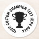 Custom World Champion trophy silhouette Round Paper Coaster. Fun for Birthday party games, sports and events. Add your own text.