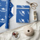 Custom wrapping paper with fighter jet plane print. Personalised gift wrap with aeroplane design. Cool Christmas Holiday or Birthday wrapping supplies for adults and kids. Add your own name or humourous quote. Blue or custom colours.