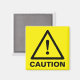 Custom yellow caution sign magnets. Handy for home, office, hospital, business, company, work etc. Exclamation mark triangle symbol with personalized text.