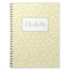 Customisable floral notebook. A hand-drawn yellow floral daisy pattern making a perfect gift. Customise the name to make it unique and perfect for any occasion. This notebook is perfect for school, notes, work, or any personal use.