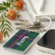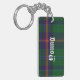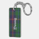 Stylish key chain done in the green, blue, red and yellow Young Scottish tartan plaid pattern. Bold white old world style text, on the front and back, is ready to personalise for yourself or as a great gift idea.