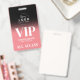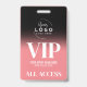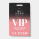 Special Event Your Logo Pink Black All Access VIP Badge. Great for fashion shows, concerts, large special events like conferences, speakers, and can even work for a birthday party or any other party where you want to make your guests feel special. A simple modern, yet elegant, look with a spot to add your company or even logo up top (or replace with a fun icon if doing for a birthday type of event). At bottom is a bold serif font mixed with simple typography, with VIP, the event name, date, and 'All Access Pass'. You can change all of the text information and colours of this badge (except the top black gradient.