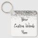 your custom words here keychain, your quote here keychain gift, twinkle glitter favour for anniversary, personalised birthday present 30th 21st, bridal shower favours hen weekend, bachelorette party gift for her, wedding reception favour keychain gifts, sparkly boho bachelorette trip, sweet 16 quinceanera 40th 50th, silver sparkle Christmas gift for stocking, Christmas stocking gift idea, Silver and White Birthday Gift for her