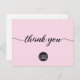 Personalise this simple and easy to use thank you postcard template with your company's logo, message, name, and return address. Let your clients, customers, patrons know you are grateful for their support during these uncertain times. Featuring a printed modern "thank you" script with long-tailed embellishments. Pink and black.