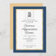 This corporate customer appreciation dinner invitation offers a sleek professional layout with a navy blue and gold border. The design offers space for your logo.