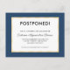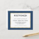 Need to postpone or cancel your event? Send this postcard to let your guests know the change in plans. The simple design is accented with a dark blue and gold border.