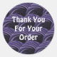Express your appreciation to your loyal customers with a sticker featuring a modern abstract pattern. This thank you sticker is adorned with layers of overlapping circles with a swirled purple and black pattern. "Thank You For Your Order" appears in the centre in white font and can easily be customised if you desire.
