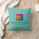 Custom Front & Back Print Company Logo Design Promotional Add Upload Company Logo Personalised Template Custom Double Sided Print Company Logo Teal Blue Green Square Throw Pillow 16" x 16".