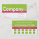 Customer Loyalty Business Card punch card with bright lime and pink colour scheme. Back of card has stamp/punch place holders and space for your company reward offer. Perfect for a frozen yogurt shop, ice cream shop, smoothie business, juice bar, cupcake business, or bakery.