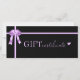 Make a lasting impression with this sleek and stylish gift certificate featuring a luxurious black-purple, complemented by a modern black ribbon and bow design. Perfect for various businesses, including beauty salons, spas, and personal care services, this certificate allows for easy customisation of essential details such as: