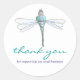 Elegant small business thank you sticker for all your valued customers, featuring a child artist's carefully detailed dragonfly. Creators give half their proceeds to kids' charities.