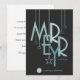 This modern era postcard features a colourful art deco style font with abstract ornaments on a white background with a spot to insert you company logo.