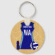 Design features a netball uniform in sky blue royal blue and whie with fully customizable Name and netball position, it also features a color co-ordinating netball and sports water bottle and on the background is a wooden netball court. This unique netball design makes a great gift or netball team memento or award for the budding netball star