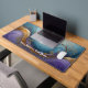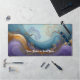 This large mat with original art depicts an abstract swirl of teals, purples and golds with trees that sway and flow with the unique design. Let this mat brighten up your computing time with its artistic flair while protecting your desk or table and giving your mouse a sleek surface to move on. Sure to add a touch of elegance to your computer setup.