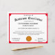 Design features a red trim with image of a gold medal award at bottom centre. Title is displayed in traditional font for a certificate. Customisable text. Available trim colours are red, gold, blue and green.