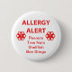 Customisable Allergy Alert Button - room to list 4 different allergies. Attach to medicine kits, lunch boxes or book bags or more. Edit text to list specific allergens or write 'please do not feed'. Alert other's to your child's tree nut allergy, peanut allergy, wheat allergy, gluten intolerance, egg allergy, dairy allergy and / or insect bites and stings. Great for kids at camp, daycare, school or family gatherings to let other's know what allergies are present or not to feed your child.