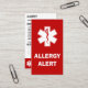 Our customisable food allergy alert cards are a great option for people looking for single-use/bulk food allergy alert cards that can be given out to food service employees, child caregivers, and more! Our design features bright red accents and the "star of life" emergency medical services symbol to make it easily identifiable as a medical alert information card. Customise it by adding your allergy/allergies and your emergency contact's name & information.
