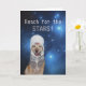 Customisable humourous card for a hard driving individual, with a 90 lb. yellow Lab in an astronaut helmet. You can customise all of the text. It could be used for congratulations or birthday. The background is a public domain NASA photo. If it is for a female, be sure to change "his" to "her" inside.